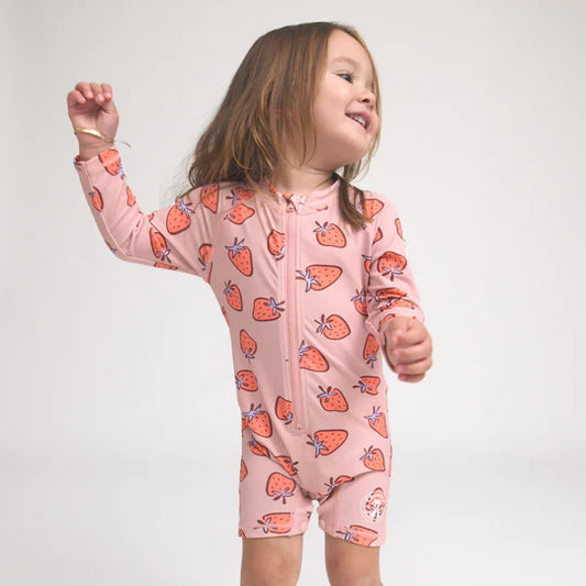 Short Sleeve Rash Suit Set - Strawberry Splash