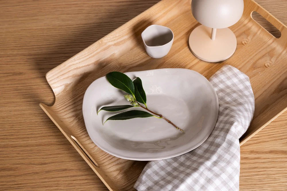 Bringing a calming palette to your kitchen. This generously sized tea towel is highly absorbent, made from a linen and cotton blend.