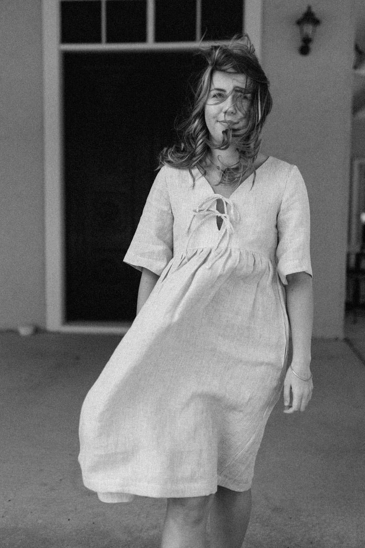 Now with a thin double tie front - wear as a bow or knot. Elbow length sleeves and gathered waist.