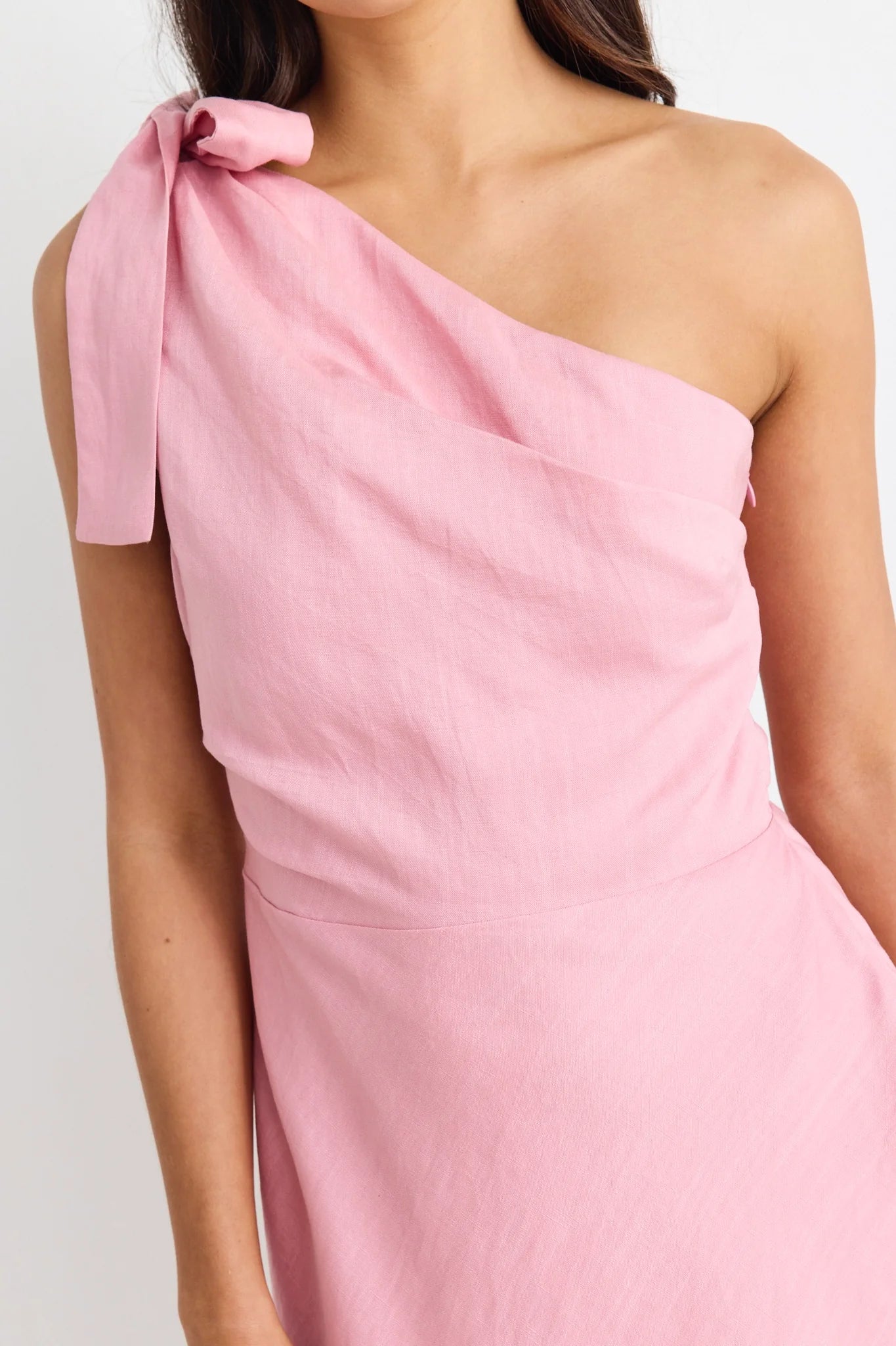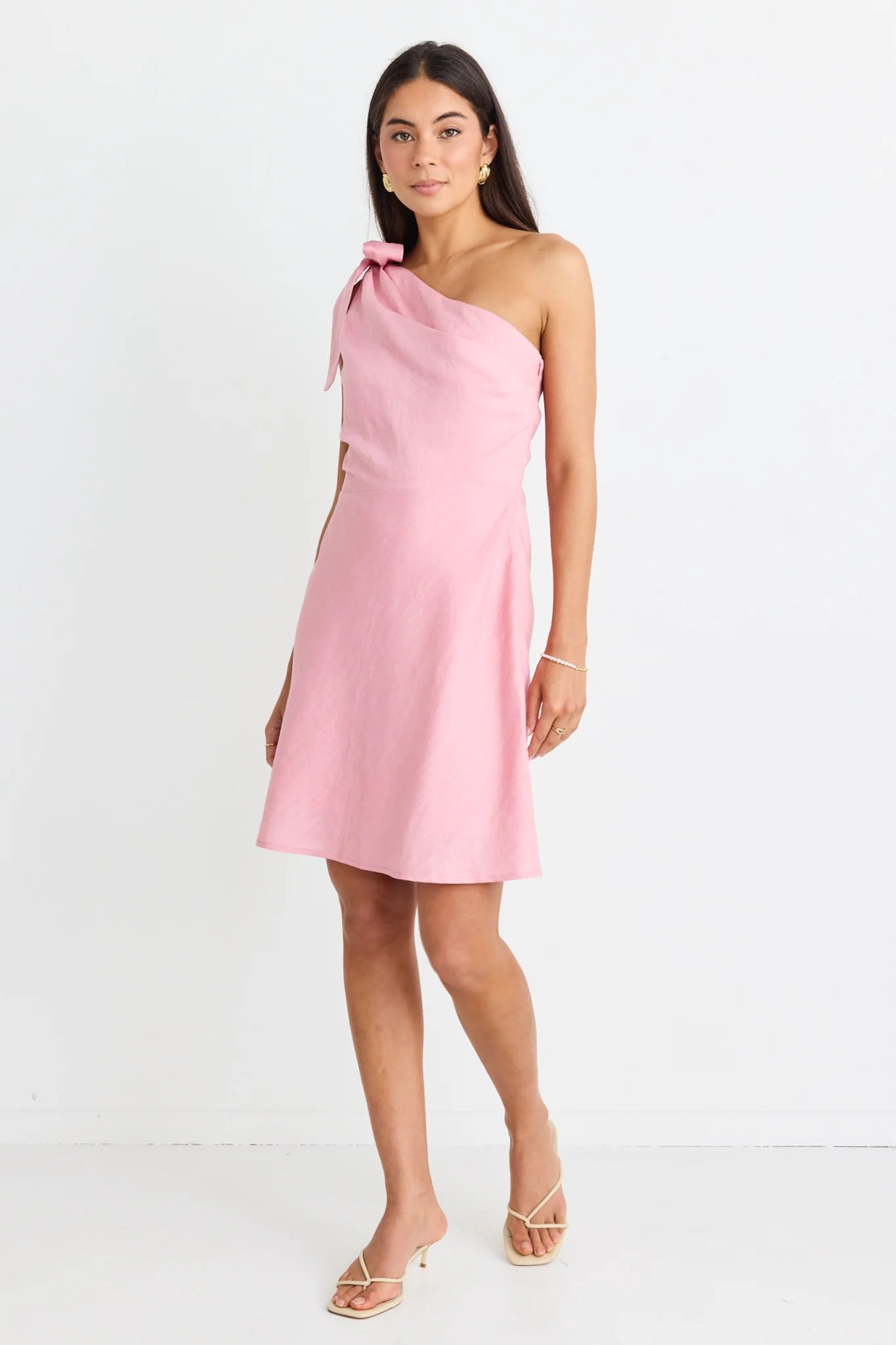 Ecstatic Blush Linen Blend One Shoulder Bow Mini Dress