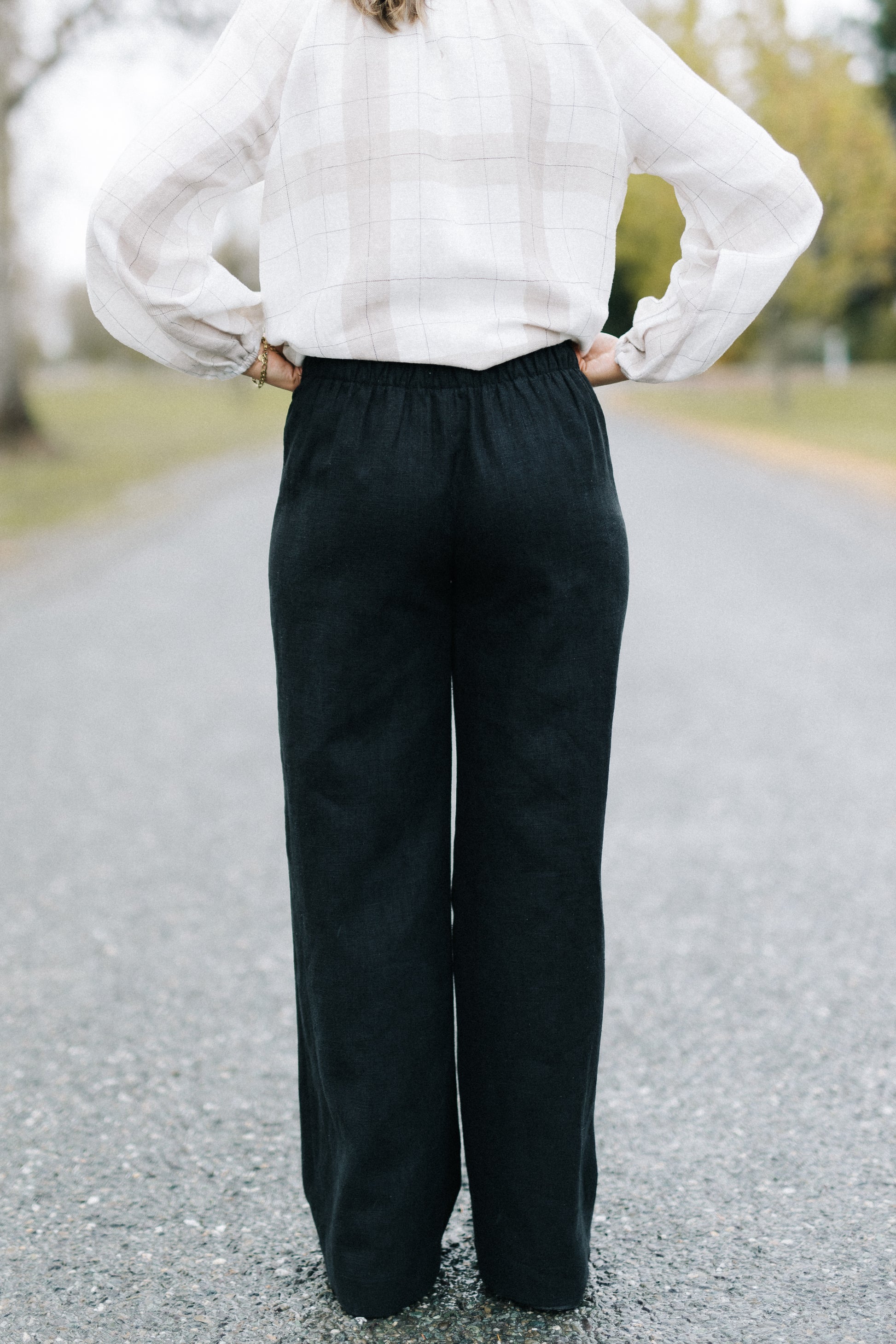 The Kiara pant is a beautiful high waisted wide leg pant, with a flattering front and elasticated back. This pant sits beautifully! Lovingly designed and made in house by us at Collaborate Fashion NZ.