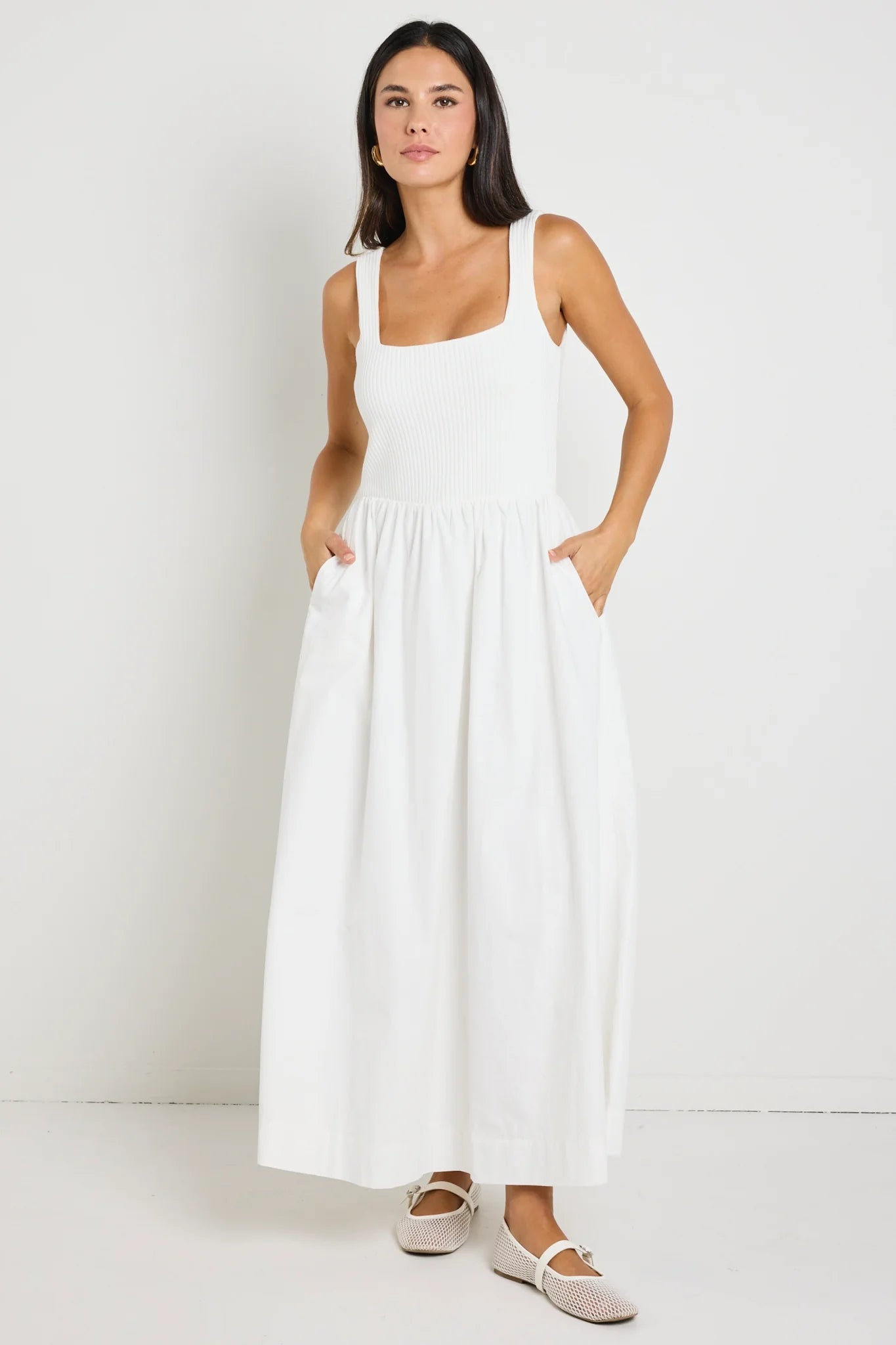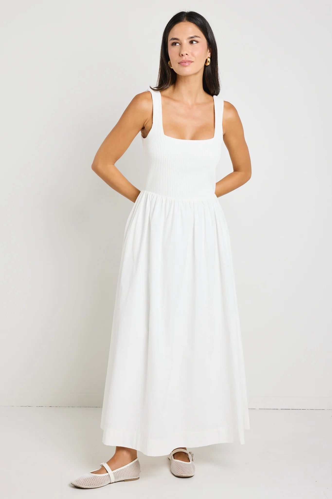 Obsidian Ivory Square Neck Contrast Midi Dress