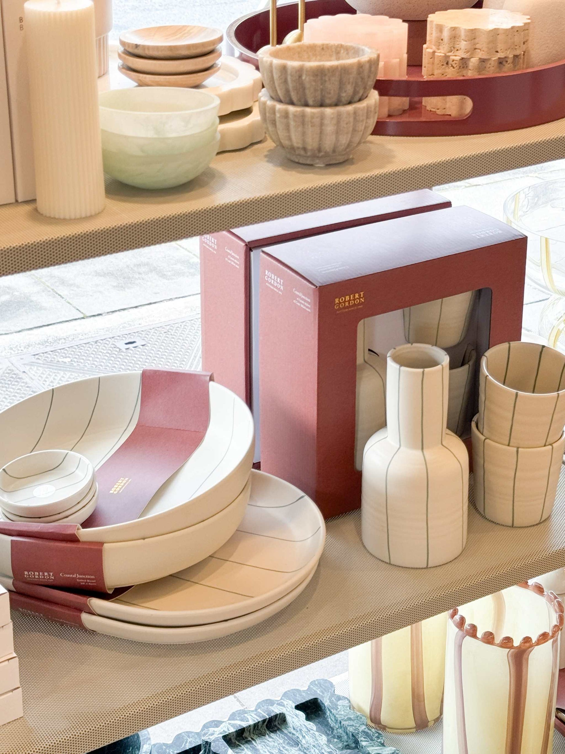 Large oval platters and shallow bowls create the perfect stage for shared meals, while condiment dishes add simple finishing touches.