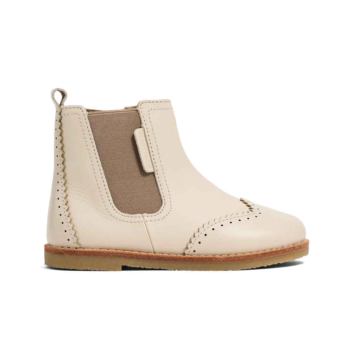 Inspired by the classic Chelsea boot style, the Pretty Brave Windsor is a timeless design crafted with premium leathers. Key design elements include brogue detailing, a reinforced toe panel and a crepe-effect rubber outsole. The elastic gusset and inside zipper make this boot super easy for children to put on and take off. A much loved versatile boot, the Windsor can be dressed up for special occasions or worn casual for everyday wear.