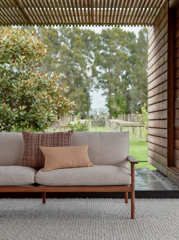 The Wyatt Cushion Cover is woven using 100% recycled silk yarn. The fine weave blends bright and neutral hues to create a classic plaid design with a contemporary feel.
